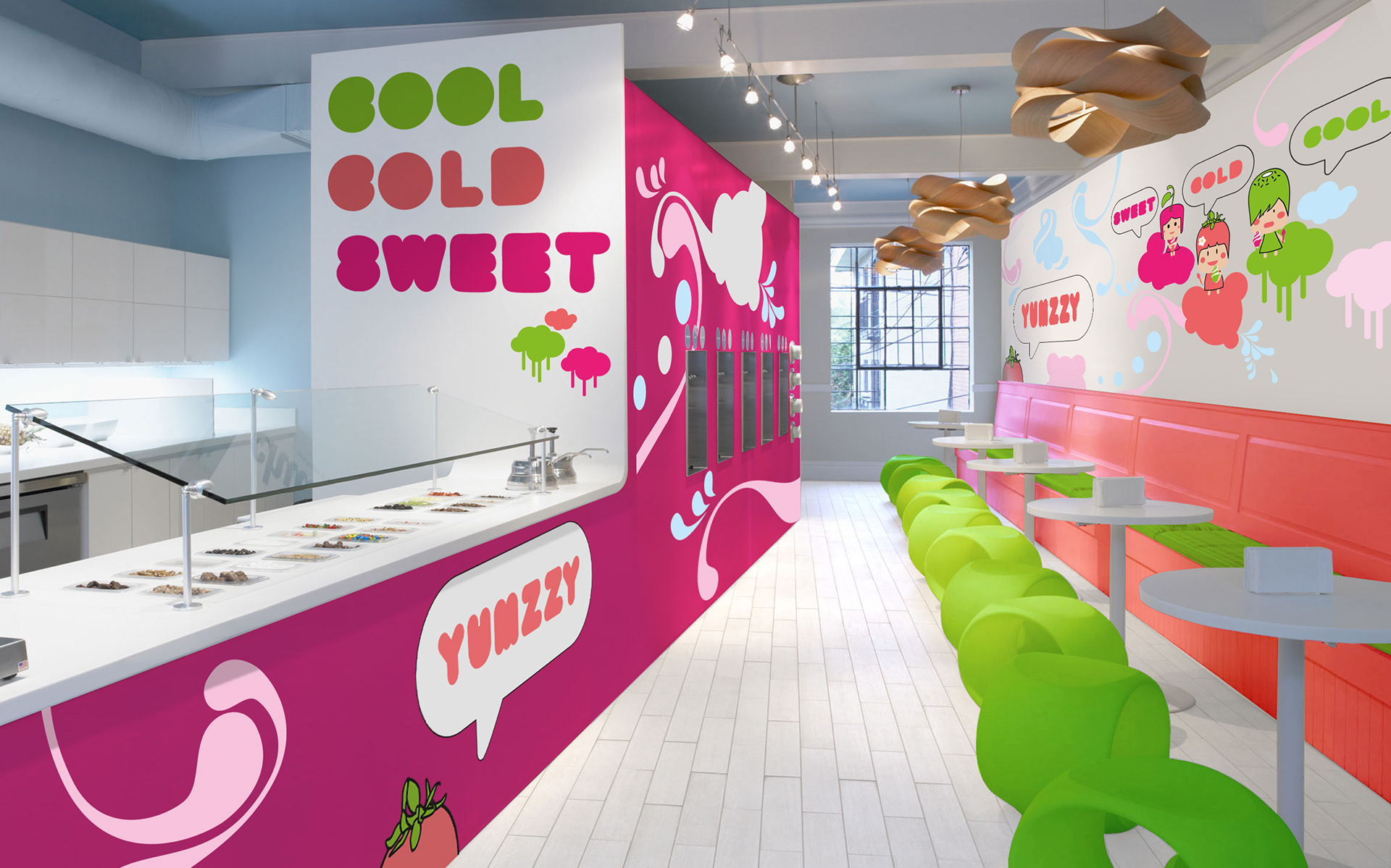 Frozen yogurt YUMZZY for Kazakhstan. This is good place for fun teenagers who loves experimenting with their looks.